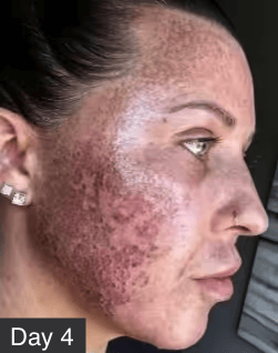 Expect 7-14 days of healing time for fractional CO₂ resurfacing. Your skin will be red, swollen, and peeling during this time. Most patients can return to normal activities after 10-14 days, though mild redness may persist for several weeks.